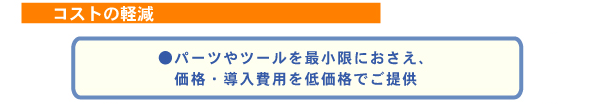 シンプルな形状・術式で、パーツやツールの少ないAQBだからこそ導入費用やランニングコストを抑えることが可能。