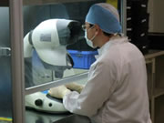 | 再結晶化HAの品質を左右するプラズマ溶射の工程も、産業用ロボットで徹底的に生産管理し、常に安定したコーティング層を生成しています。 | 感染源になる微小な傷、異物の付着を防ぐため、当社では製品の検査工程でも最新の立体視顕微鏡を導入、微少な異物を見逃しません。検査も高水準レベルを維持しています。 | 業界トップクラスの品質を支えるために、高い知識と経験を持つエキスパートの厳しい目による確認は欠かせません。 |