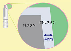 1. 処理前一般的にチタン表面はとても薄い酸化被膜(4nm)で覆われています。 |