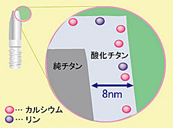 Caが酸化層にあるため、HAコーティングを行う際、基材の純チタンとの癒合も高めます。
