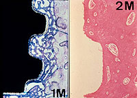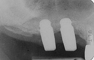 ![]() ▲植立1ヵ月後には新生海綿骨、2ヵ月後に成熟過程に入るので補綴は慌てず |