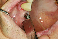 ![]() ▲骨植の嵌合度や骨癒着度の判定には歯科用ピンセットの頭で、打診音を聞くのがよい |