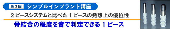 1ピースの優位性について1回目の「総論」、2回目の「2ピースシステムと比べた1ピースの発想上の優位性」に次いで、今回は「植立後の骨結合の程度を判定しやすい1ピースの優位性」というテーマで持論を展開してみようと思う。また、その優位性を維持するための臨床上のヒントも、紙面の許す限り網羅してみるつもりである。