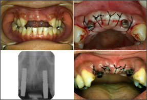 ![]() ? その2Y後にみられた残留セメントの褥瘡による頬側粘膜の穿孔(fenestration) |