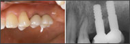 形成印象法や冠のcontour, Emer-gence Profileについては前回述べたので、具体的に経年観察をしている症例を下記に供覧することにする。1ピースでも審美性の工夫で、2ピースに負けない審美性が得られることがわかると思う。しかも無理のない審美性で、もしかしたらより永続性のある審美性が得られるかもしれない。直径3mm症例でも歯肉縁下からの立ち上げでほとんどの場合、審美的に満足できる補綴ができる(3mm症例に関しては、別の回に詳しく述べる予定)。また近心隣在歯が近心傾斜している場合などは、インプラントとその近心の天然歯との間が広くなり、中途半端な歯冠空隙ができやすい。無理なover contourで接触させると頭でっかちで形態的にも好ましくなく、インプラントに負荷がかかり過ぎ、over contour部の清掃性も悪くなる。そんな場合、近心ポンティックや遠心ポンティックを工夫するとよい。また審美性の要求される部位でなければ、むしろ歯冠は接触させず、しっかりと離した方がよい場合もある。